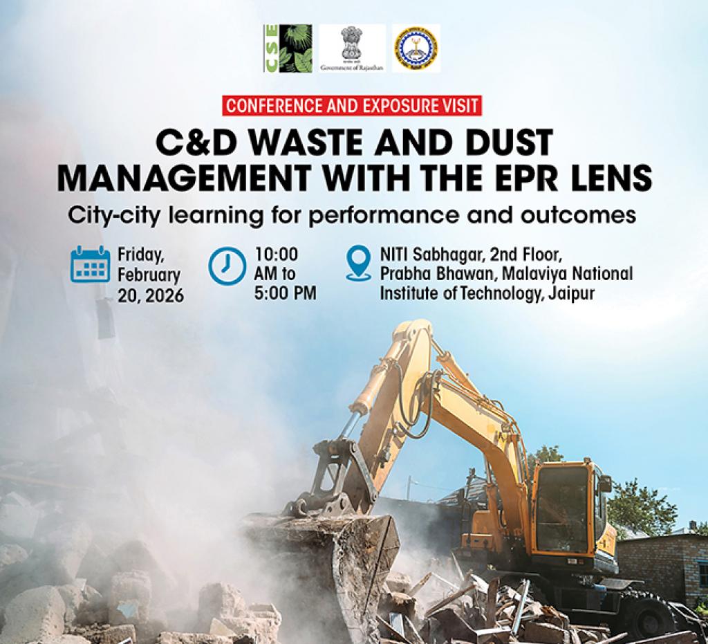 Centre for Science and Environment (CSE) invites you for a conference and exposure visit in Jaipur, organised jointly with the Directorate of Local Bodies, Government of Rajasthan and the Malaviya National Institute of Technology (MNIT). The subject is Construction and Demolition (C&D) Waste and Dust Management.