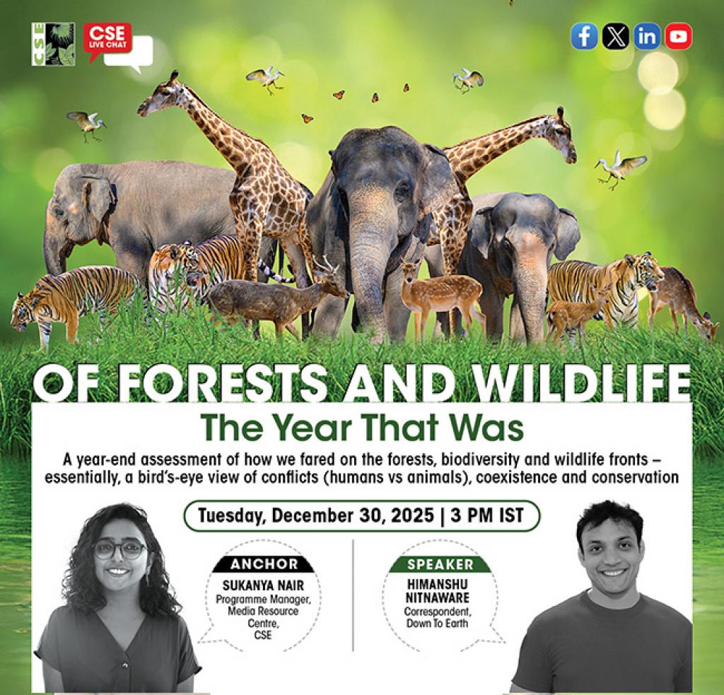 oin us for a CSE Live Chat with Down To Earth’s Himanshu Nitnaware to take stock of the key developments of 2025: where conflicts escalated, how conservation efforts responded, and what this year says about the future of human-wildlife coexistence