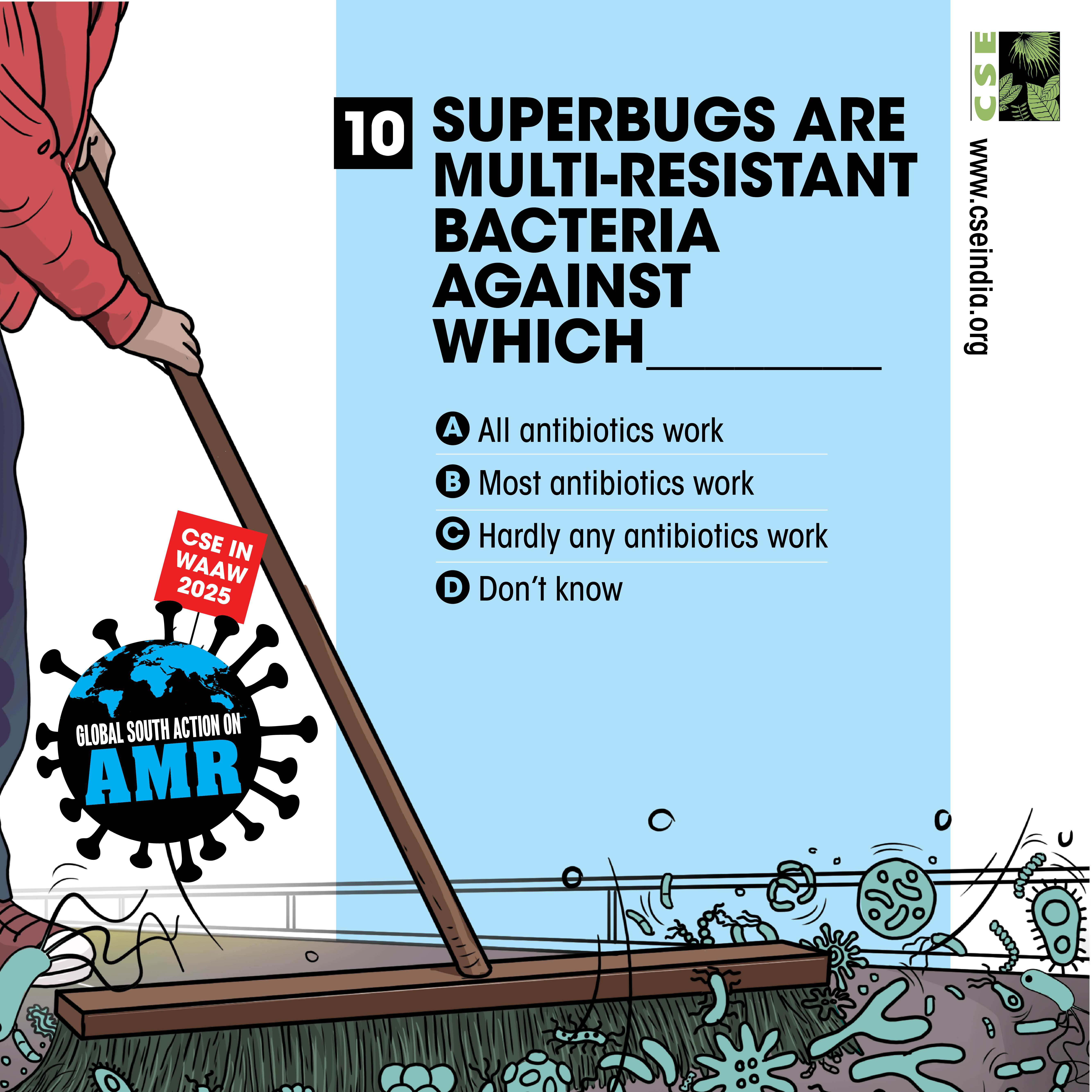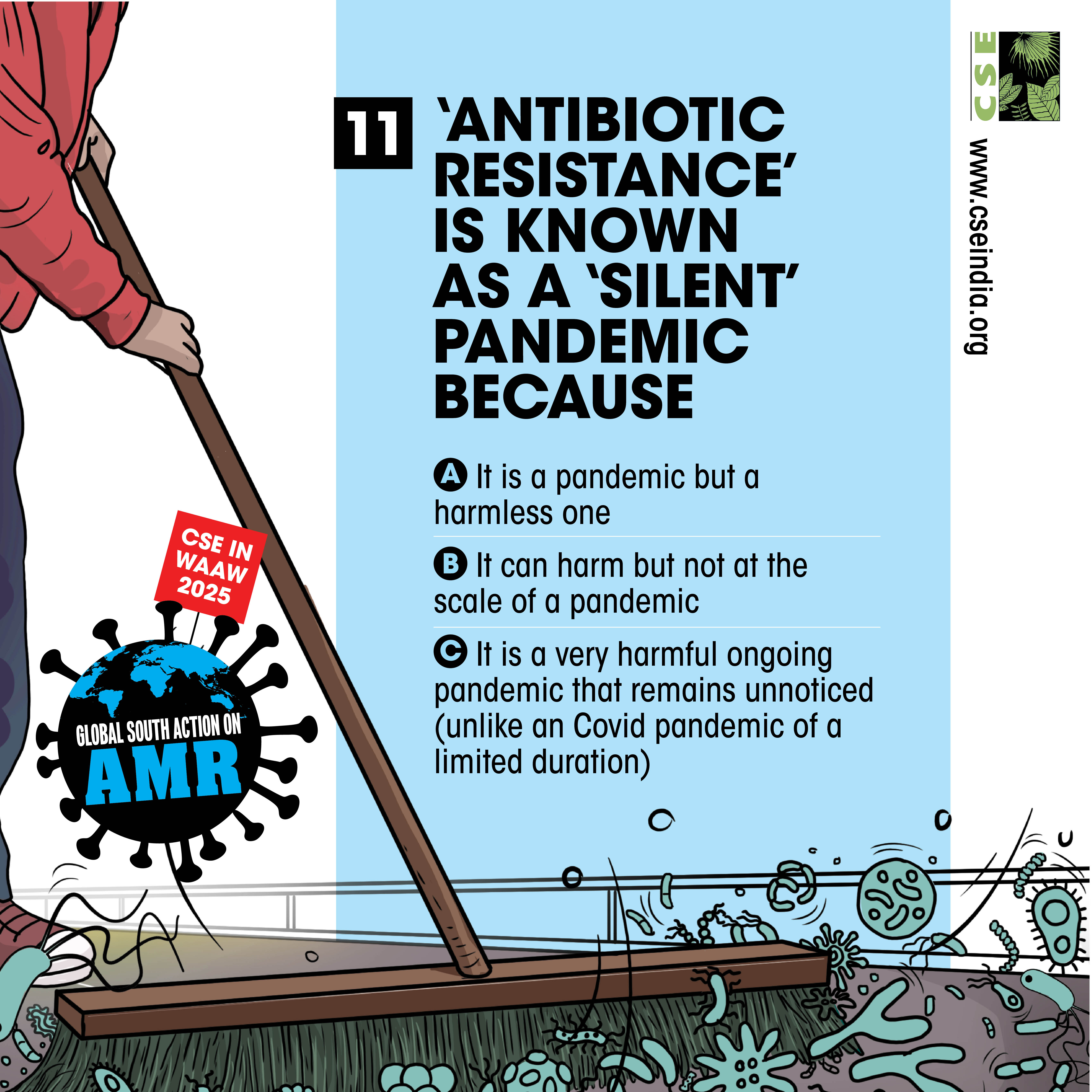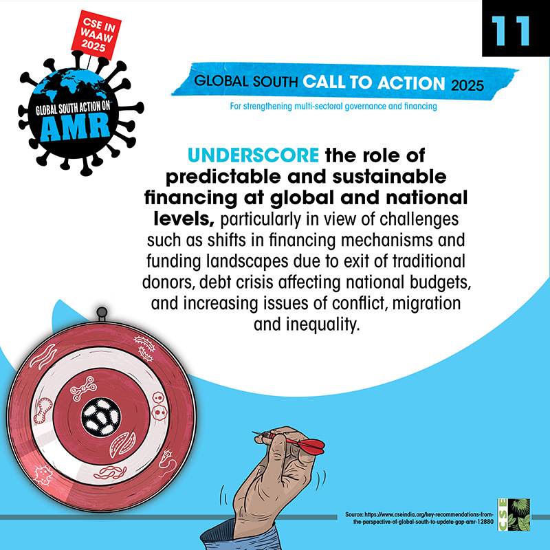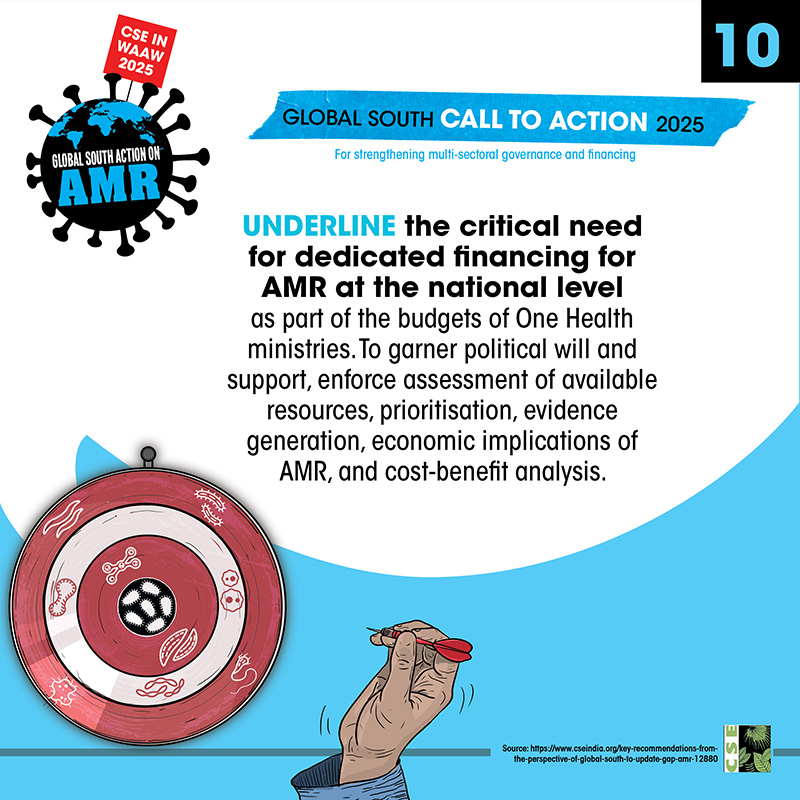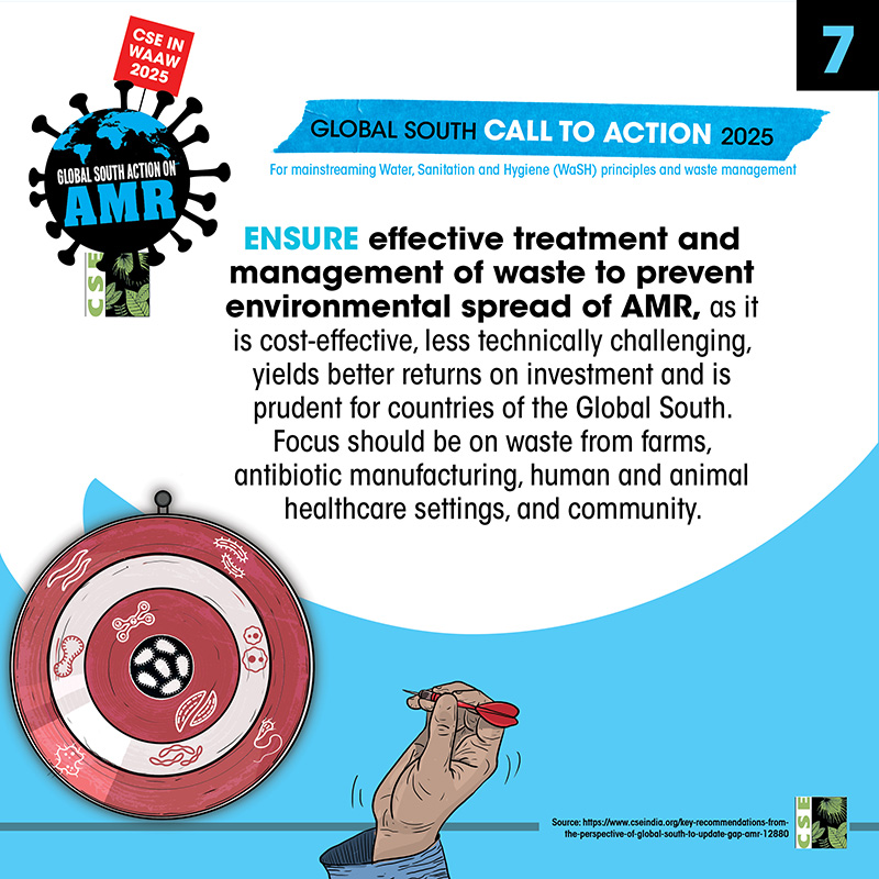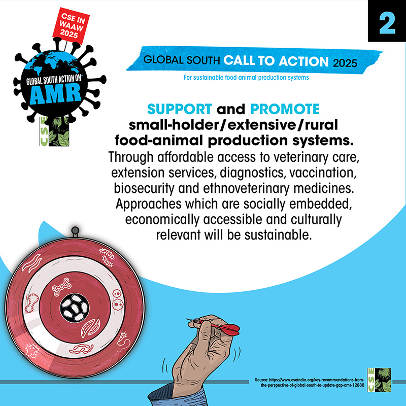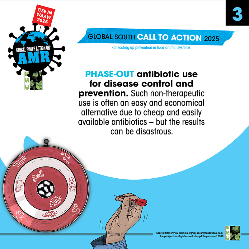 The World AMR Awareness Week (WAAW) is a global campaign to raise awareness on AMR, and is celebrated from 18-24 November every year. The Centre for Science and Environment (CSE) marks this week each year through a global campaign. In its 10th year, the theme of CSE’s initiative is ‘Global South Action on AMR’, as part of which we will be engaging with experts and stakeholders to spread awareness about practices, key issues and solutions through webinars, videos, articles, opinion polls, online and social media campaigns. For about a decade and a half, CSE's Sustainable Food Systems team has been working towards an effective global response on antimicrobial resistance (AMR), particularly from the perspective of the global South. It is clear that the realities, challenges and possibilities of the Global South are different. There is a strong need to reflect the priorities and challenges of the Global South, so that the global response to AMR crisis is truly global, effective and sustainable. Our work on AMR can be seen here. The global theme for WAAW 2025 is “Act Now: Protect Our Present, Secure Our Future.”