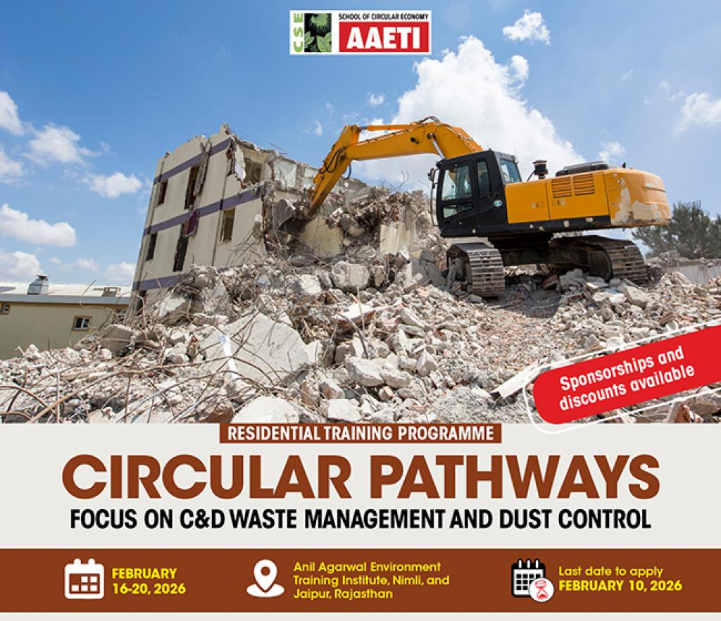 Only a fraction of construction and demolition (C&D) waste generated in India is currently recycled or reused. Whereas, approximately 90% of such waste can be repurposed after processing and meet India’s increasing demand for building materials. Moreover, mishandling and indiscriminate disposal of C&D waste can account for atleast a third of a city’s particulate pollution. While plans are underway to double the current number of over 35 operational C&D waste processing plants across the country, significant gaps in implementation persist. For these facilities to be economically viable, the entire ecosystem must be strengthened, encompassing C&D waste bye-laws, curbing illegal dumping, collection, transportation, user charge notifications, processing and reuse.