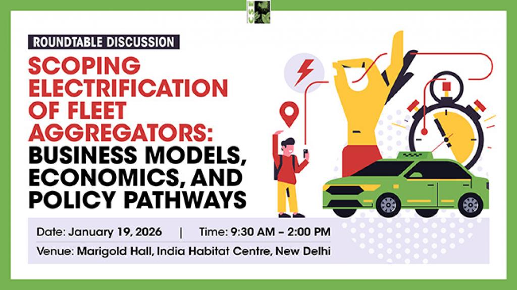 The Centre for Science and Environment (CSE) is organising a roundtable on “Scoping Electrification of Fleet Aggregators: Business Models, Economics, and Policy Pathways” on January 19, 2026 (9:30 am–3:00 pm) at India Habitat Centre (Marigold Hall), New Delhi.