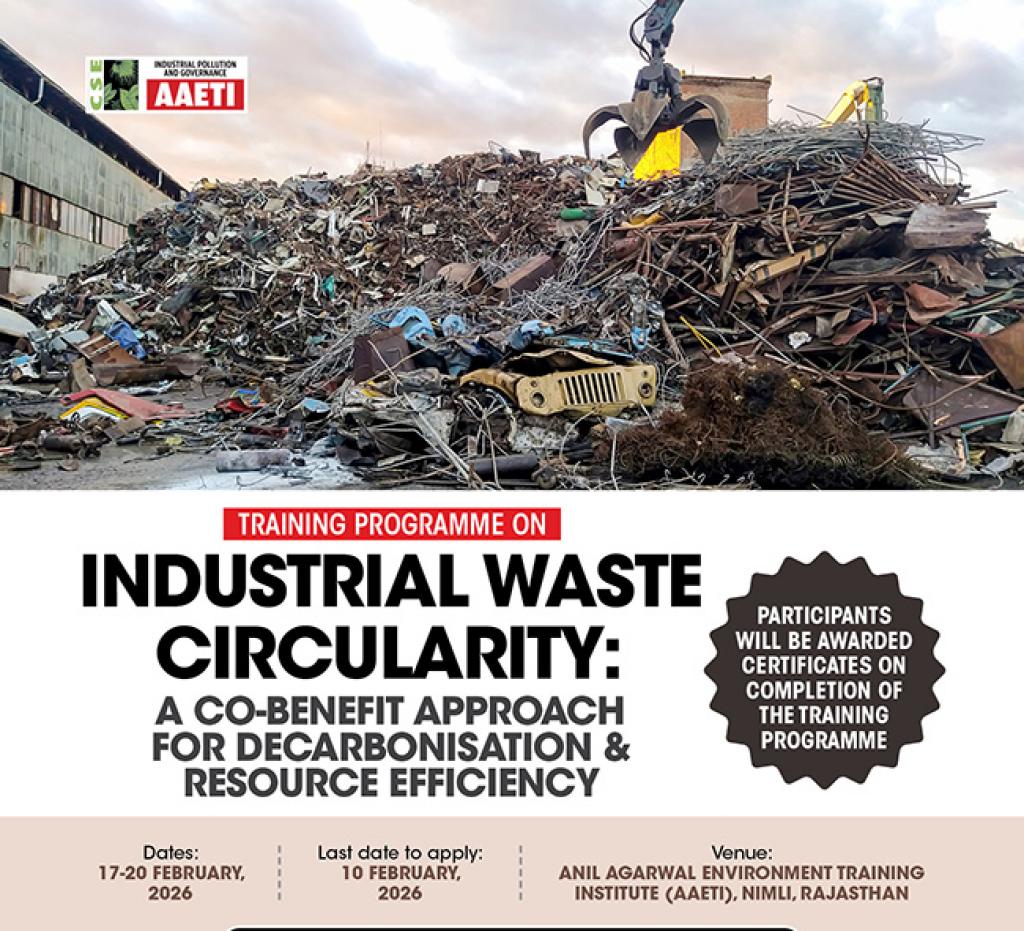With this background, CSE is organizing a training programme on industrial waste circularity: A co-benefit approach for Decarbonisation & Resource Efficiency during 17 to 20 February, 2026 at AAETI, Neemli. The training is intended to follow dual mode with the training part highlighting the various aspects of circularity, the limitation and challenges in industrial ecosystem and also showcase the case studies on industrial waste circularity which are already under way in different industrial sectors covering different wastes.
